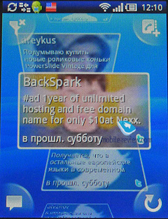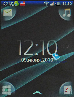 - На рабочем столе есть четыре иконки в углах экрана, по умолчанию это сообщения (есть отображение в режиме чата), музыкальный плеер, клавиатура и контакты. При желании вы можете заменить эти иконки на любые другие. Я этого делать не стал, мне кажется, выбор более чем логичен. Когда вы находитесь на рабочем столе, нажатие левой кнопки выводит меню функций, среди них изменение виджетов, фонового рисунка и иконок. Фон полностью меняет цвет меню, верхняя строка остается синей. В X10 все не так, все хуже. Там от синевы избавиться тяжелей. Вы можете использовать виджеты, но вытащить на рабочий стол ярлыки программ не получится. Должен отметить, что анимация в Timescape сделана хорошо, при переходе в меню иконки по углам прячутся, на эти моменты вроде бы и не обращаешь внимания - мелочь, а приятно