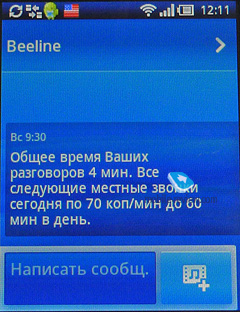 - USSD-команды. Особая боль. Я использую в основном «Билайн», на экране появляются красивые кракозябры. Потом приходит сообщение, тут уже все читается легко. Как-то бороться с напастью не стал